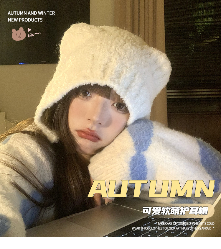 Soft Cute Bear Woolen Hat Children Autumn And Winter Big Head Around The Foreign Air Warm Ear Protective Hat Fashion All The Top Hat