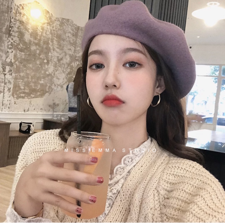 Wool Beret Woman Autumn Winter Korean Version Japanese Sweet Lovely Bud Hat British French Painter Hat Wool Hat